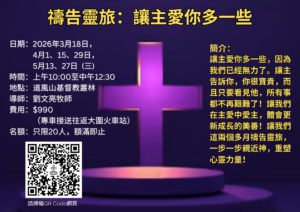內容:本工作坊以詩篇廿三篇為主軸,透過默想、茗茶靈修與書法靈修,沉浸在主大愛中的十二靈性心境,包括:信靠、足夠、放心、安歇、恢復、天路、同行、安慰、堅定、滿杯、恩愛、安居;這六堂工作坊旨在引領學員在神面前安放生命,經驗神的同行、醫治與餵養。(參加者無須懂得書法)