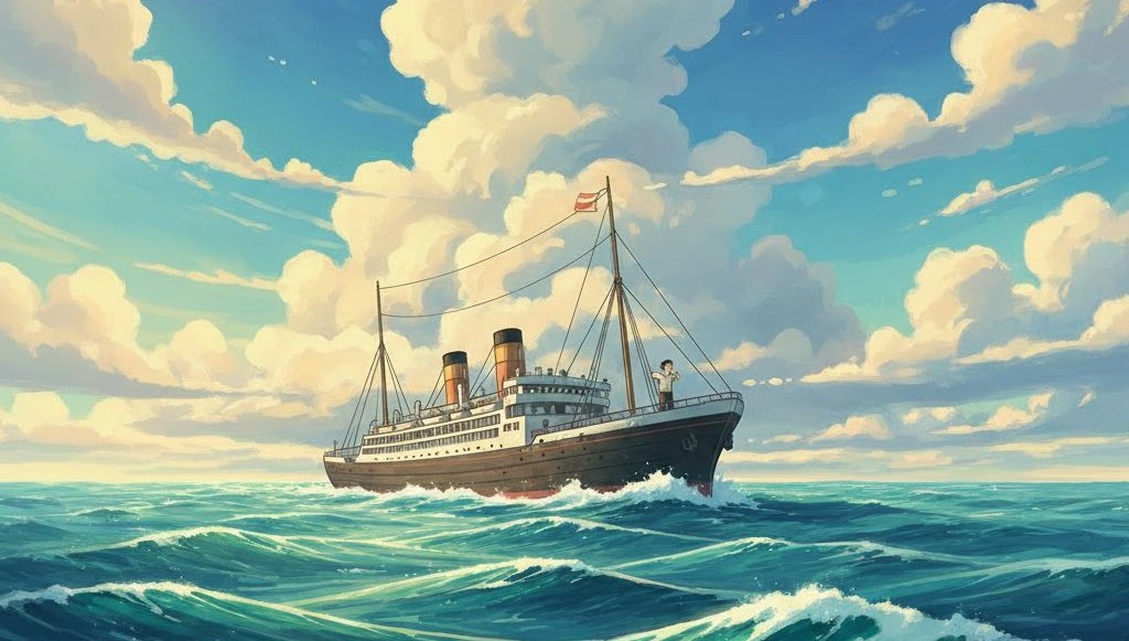 有一天在碼頭上見有往香港的船,我就買了一張票,次日(六月一日)上船,至午開船,二日至大洋之中,遠觀碧波滾滾,就想起除慾制心的二句話:「如在海洋觀宏水,彌漫六合似汪洋」。真是秋水一塵不染,萬念俱泯,我就凝神默想,覺身雖坐在船上,心卻遊於太虛,無罣無碍,十分自在快愉啊!