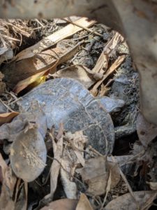 前幾個月,當蓮花池仍有水時,我們已找不到這隻龜,原來牠當時應該正在冬眠,因此一直沒有出來。直至最近的春雨後,我們在驚蟄的後一天再次見到牠的蹤影。